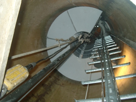 Multitech Damper Solution employed a unique approach in repairing a vibrating double-skin steel stack of 30 meters by utilizing a liquid damper composed of two parts. This innovative design not only effectively mitigated vibrations but also provided added functionality by serving as a top platform with the incorporation of a handrail.